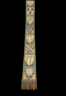 Item, une autre tunique et dalmatique de satin vert pour prelate, comme dessus, et orfraiez tout a long avec l’estole et fanon sur champ d’or, a pluseurs armoieries Bedford Inventories 191.B144