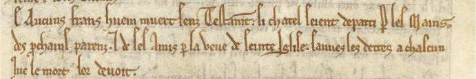 [S]e aucuns frans huem muert senz testament, li chatel seient departi par les mains