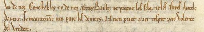 [N]us de noz conestables ne de noz altres bailliz ne pregne les blez ne les altres chatels