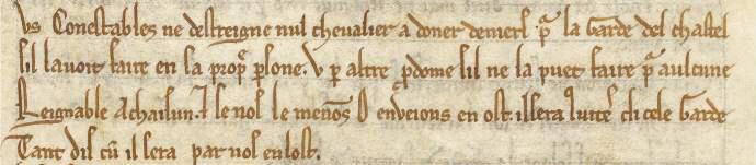 [N]us conestables ne destreigne nul chevalier a doner deniers por la garde del chastel