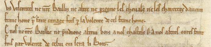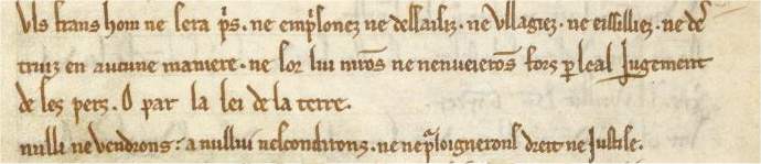 [N]uls frans hom ne sera pris, ne emprisonez, ne dessaisiz, ne u[t]llagiez ne eissilliez, ne des
