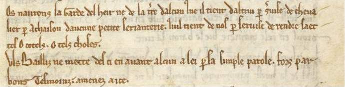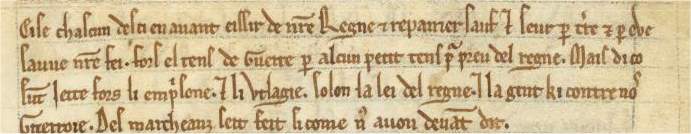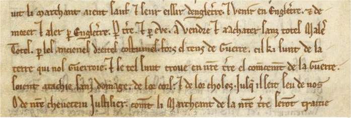The existence of a version of Magna Carta in Anglo-Norman is itself of some significance. It is relatively unusual for an important political and state document to be written in any language other than Latin, which at this time was the language of the church, of education, and of power all over Europe. England is a bit of an exception in that Anglo-Norman (the language of the Conqueror and his men) came to be used at a very early stage – earlier than in France – for similar purposes, presumably as a sort of statement of authority on the part of the Normans.