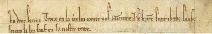 sauve nostre fei, fors el tens de guerre par alcun petit tens por preu del regne; mais d’iço