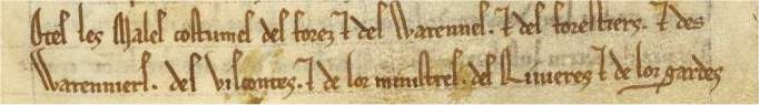 [T]otes les males costumes des forez e des warennes, e des forestiers e des