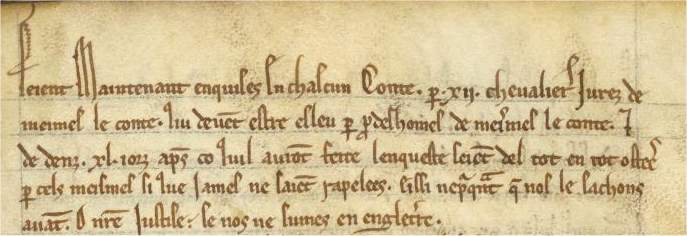 seient maintenant enquises en chascun conté par xii chevaliers jurez de